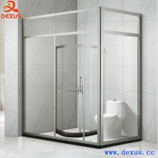 具备卫生间隔墙+ 淋浴房 特 点:边框有20mm可以调节 铜双轮 关闭安静 金属拉手 专业纳米易洁玻璃 专业防爆玻璃